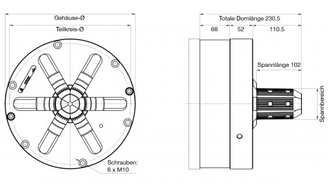 Höchste Produktivität dank großem Spannbereich und minimalem Umrüst- und Wartungszeiten, ohne Demontage des Spanndorns.